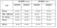 各種壓鑄合金常用比壓表